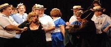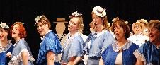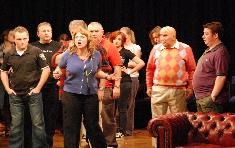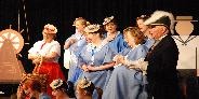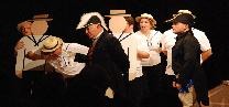 Paul Buckle blundered and blustered as Barney, the romantically errant leading-man, egged on by Kevin Welch, as his more worldly-wise friend, Richard. Janet Holloway was a flirtatious delight as Aggie, the Buttercup of the production, with Fiona Thomas, slinky and theatrical as chorus member, Christine. Howard Turnbull gave a larger than life performance as the autocratic Chairman, with Liz Howson as his patient wife Anne. Cheryl Payne, the rejected and complaining accompanist Doris, Rhiannon Rose, pert and pretty as the leading lady Sharon, Steve Davies, hesitant and bemused as new member Robert, and Kevin Morgan as Raymond, a dithering liability as Sir Joseph Porter, all added to the fun. As the cause of all their angst, Sarah-Jane Waters stormed and raged as the frustrated producer Caroline, to great effect.